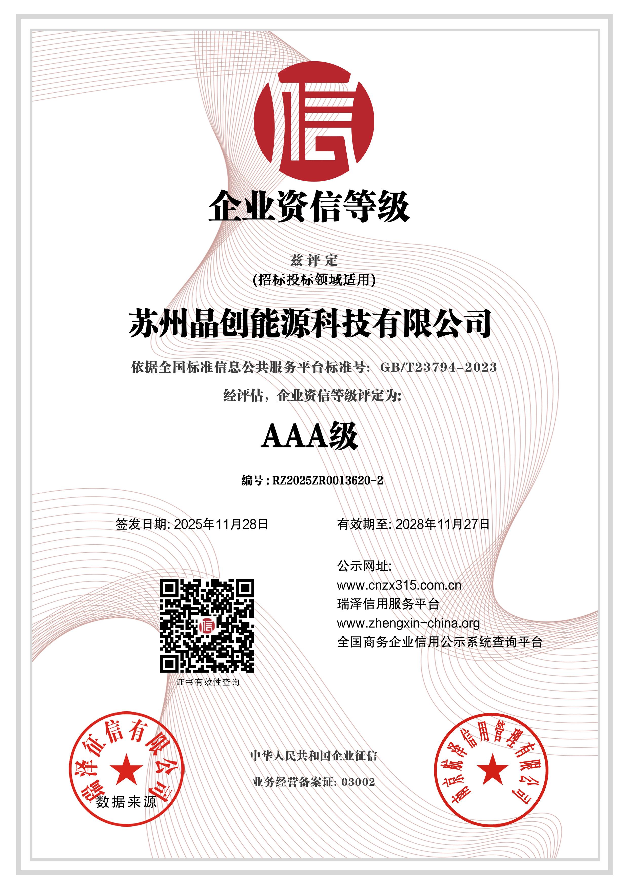 AAA级企业资信等级