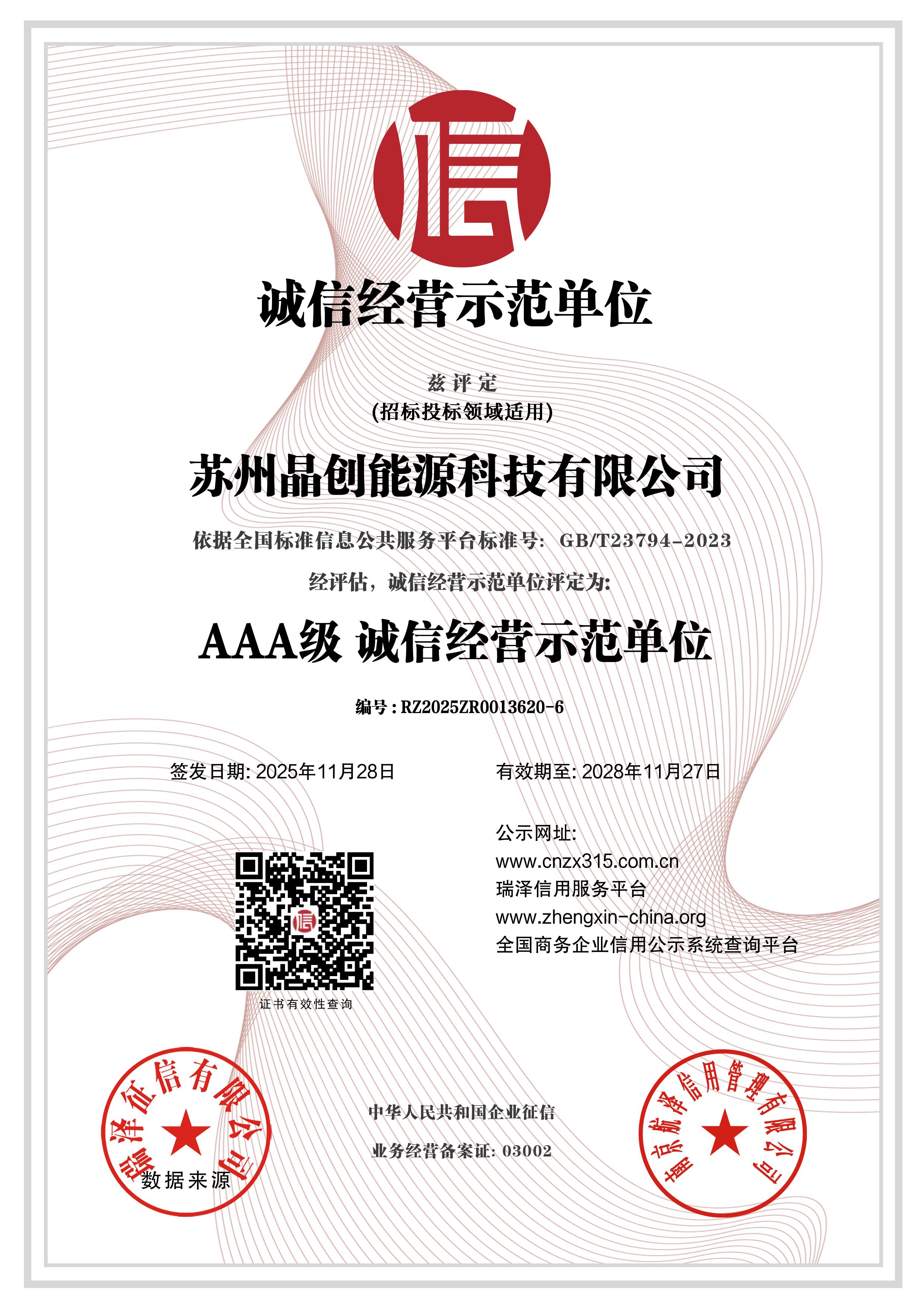 AAA级行业诚信单位