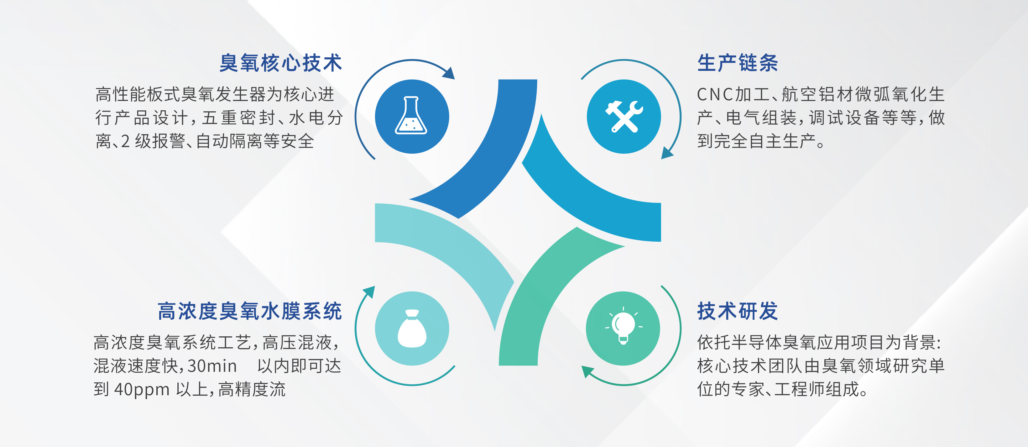 集约型臭氧水系统,是完全自主研发的高性能臭氧系统。主要应用于氧化膜生长、金属离子去除、有机物去除、半导体晶圆清洗、MASK清洗、液晶清洗以及电池片清洗等。 有机物去除,金属残留去除,污染物去除,光刻胶剥离、晶圆清洗、电池片制绒清洗和氧化物生长等。