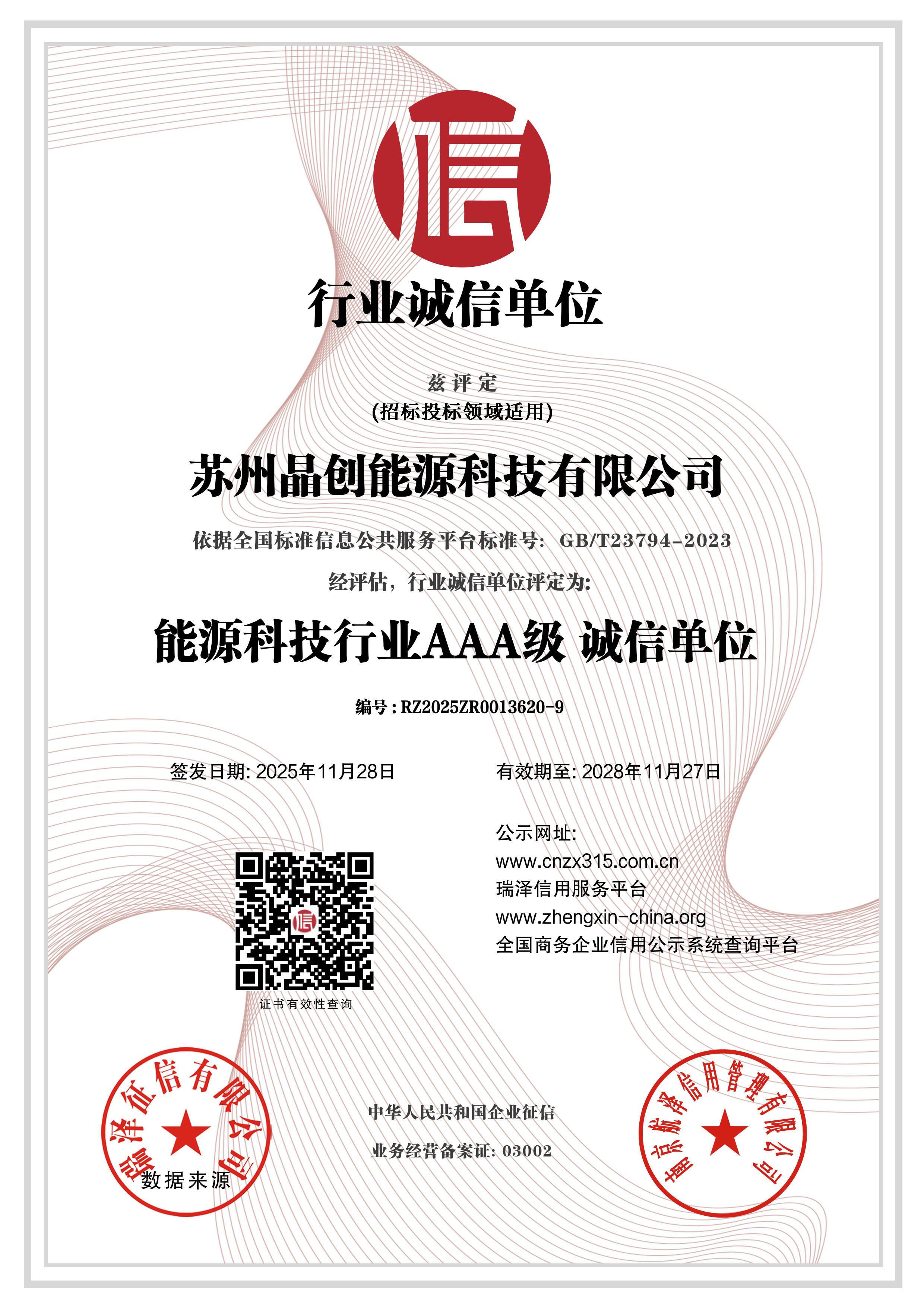 AAA级行业诚信单位